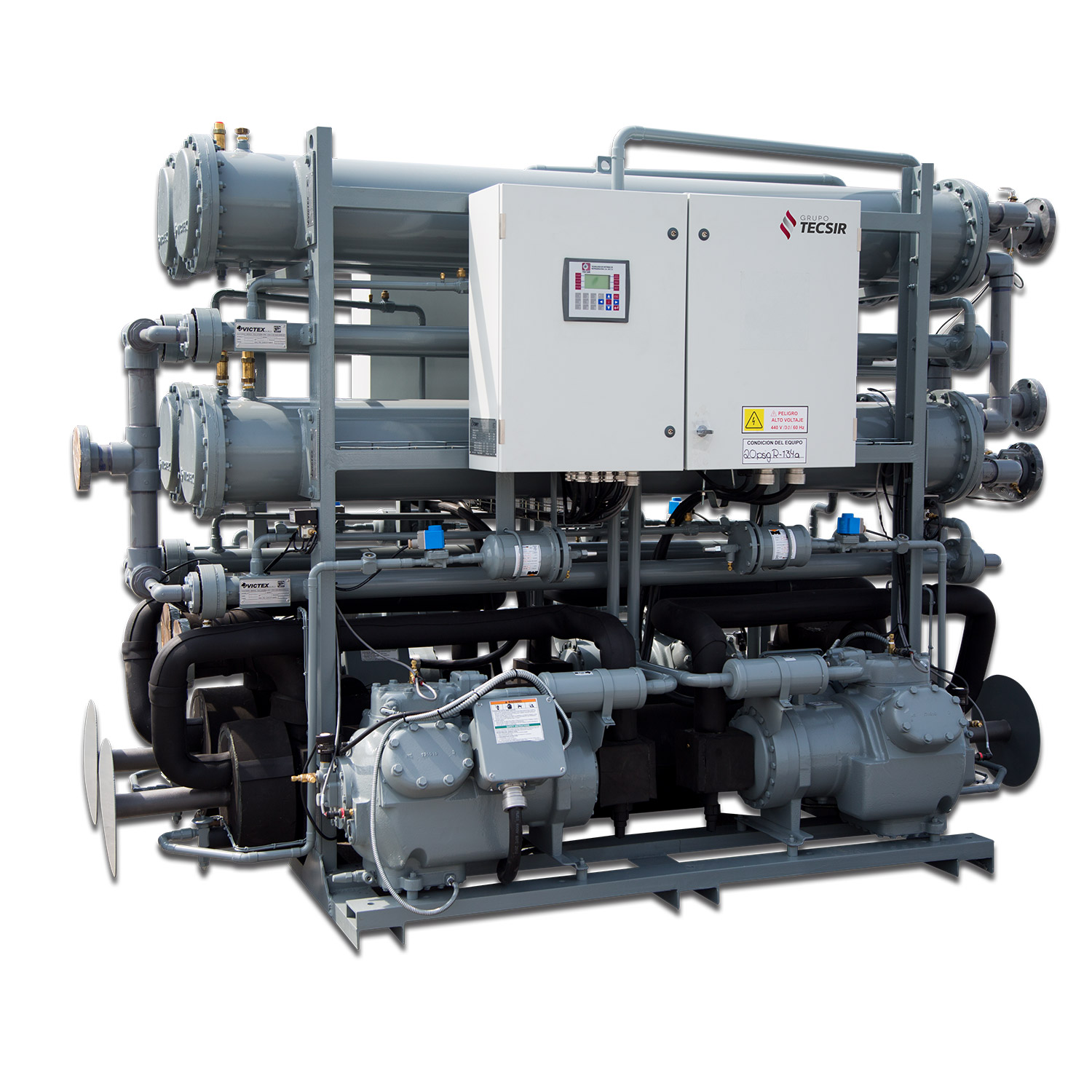 Equipo especializado para aplicaciones industriales, comerciales y de servicios que necesitan enfriamiento y calefacción de agua simultánea a temperaturas más elevadas. Ideal para proyectos que buscan reducir el uso de equipos separados, aprovechar la recuperación de calor y mantener un suministro constante para procesos, sanitización o confort.