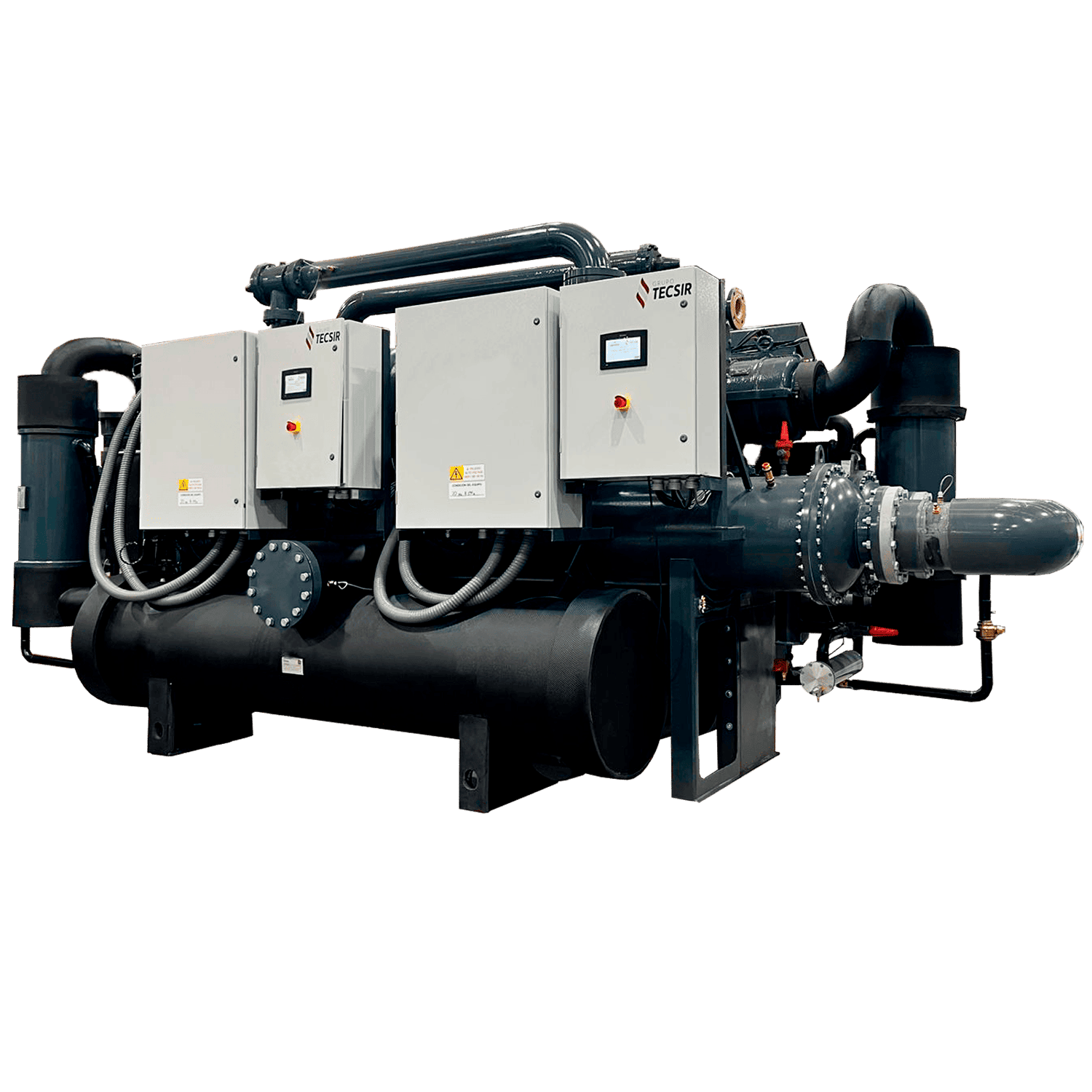 Equipos de alta capacidad para aplicaciones industriales y comerciales donde se busca optimizar recursos, produciendo enfriamiento y agua caliente de forma simultánea. Ideales para procesos que requieren recuperación de calor para agua de proceso, calefacción, limpieza o suministro sanitario, logrando ahorros significativos de energía.